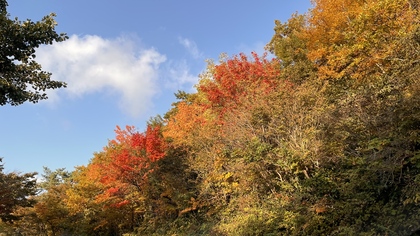ブナやナラ、カエデなどが赤や黄色、橙に染まり、山全体がまるで絵画のような美しさ。