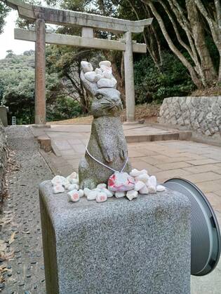 境内を進むと、細かなところにうさぎのモニュメントがたくさん。神主さんの装束もうさぎモチーフでした。